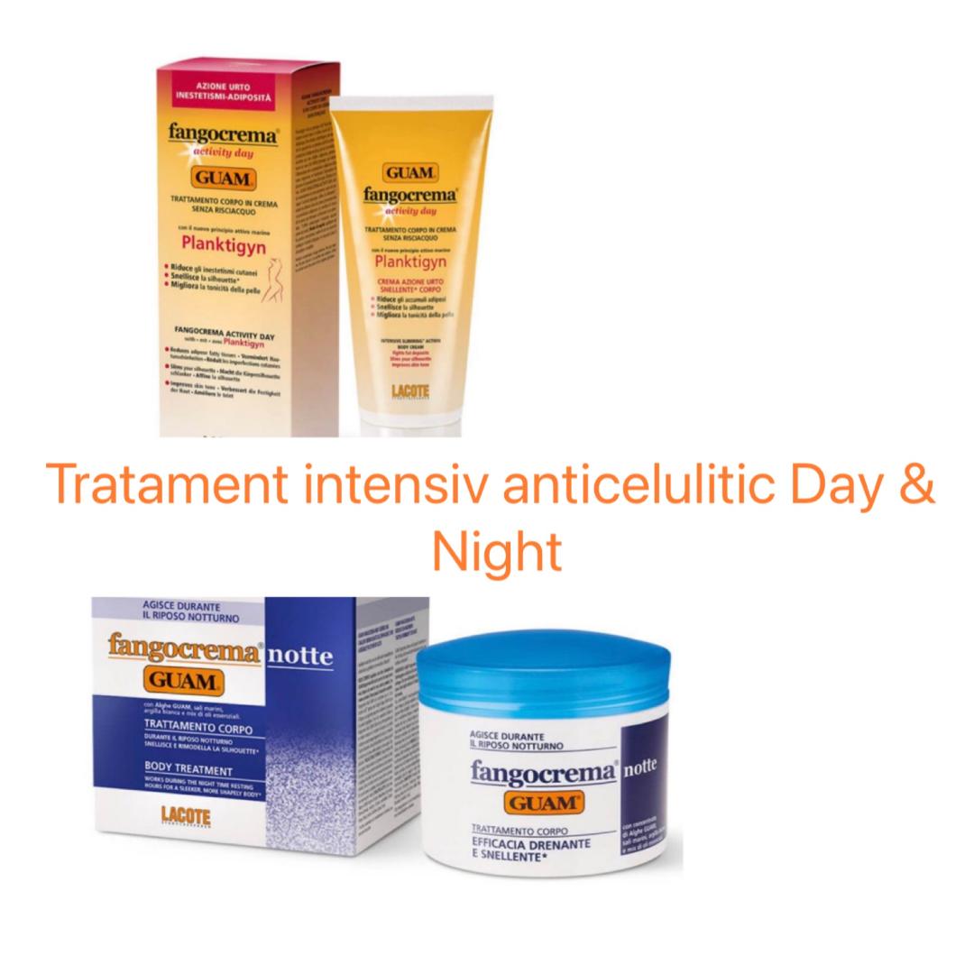 Un tratament complex intensiv anticelulitic pentru remodelare corporala si un corp fara imperfectiuni cu cele mai eficiente produse pentru remodelare corporala: crema Activity Day 200 ml si crema anticelulitica de noapte pe baza de namol la 500ml.